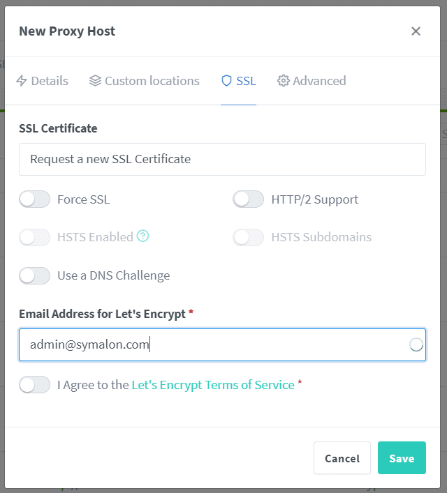Wir erstellen einen neuen Proxy Host mit der (Sub)Domain.